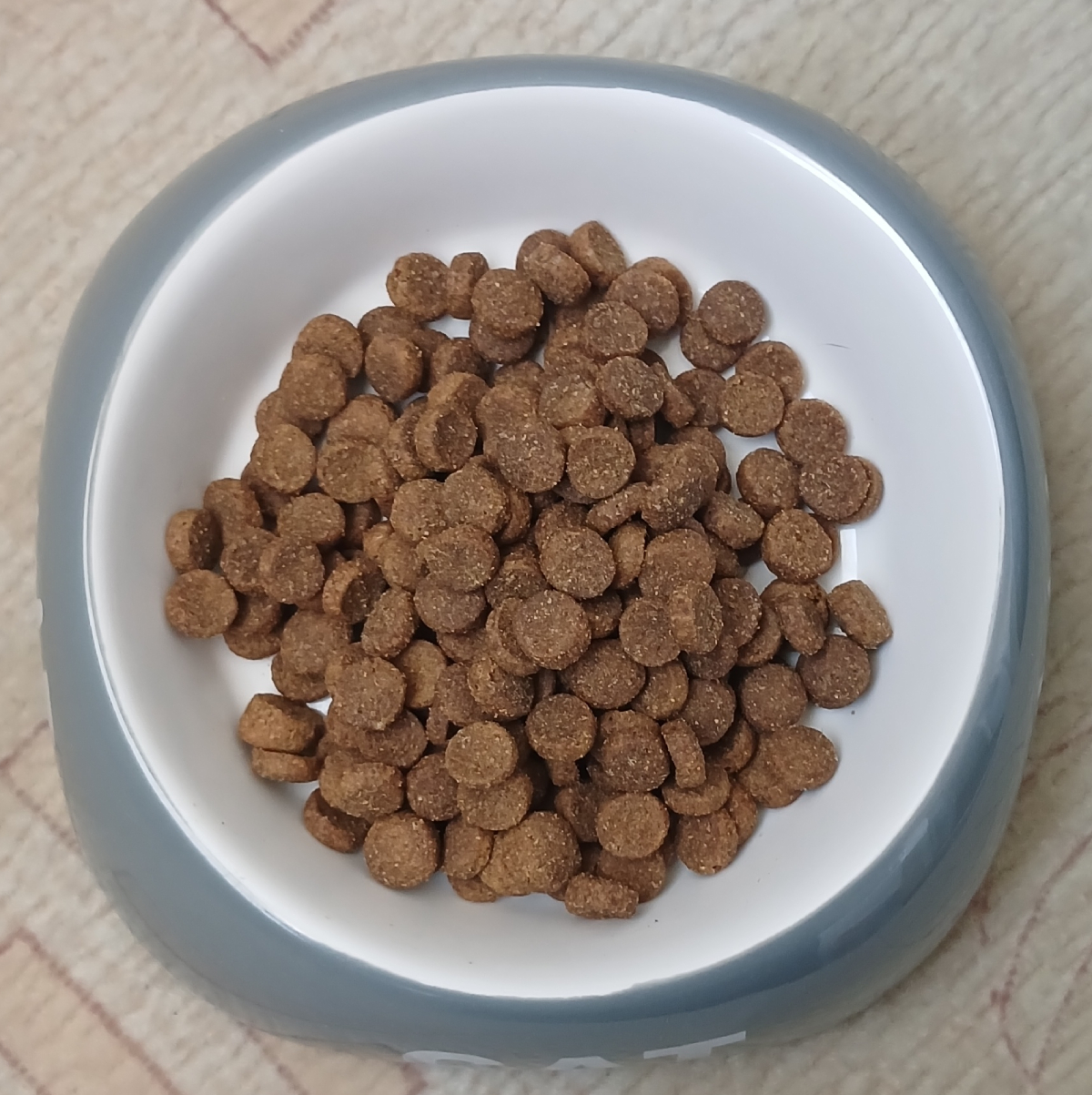 Корм имеет приятный аромат рыбы, который сразу привлекает внимание кошек. Гранулы среднего размера и твердости, их легко разгрызает взрослый кот.